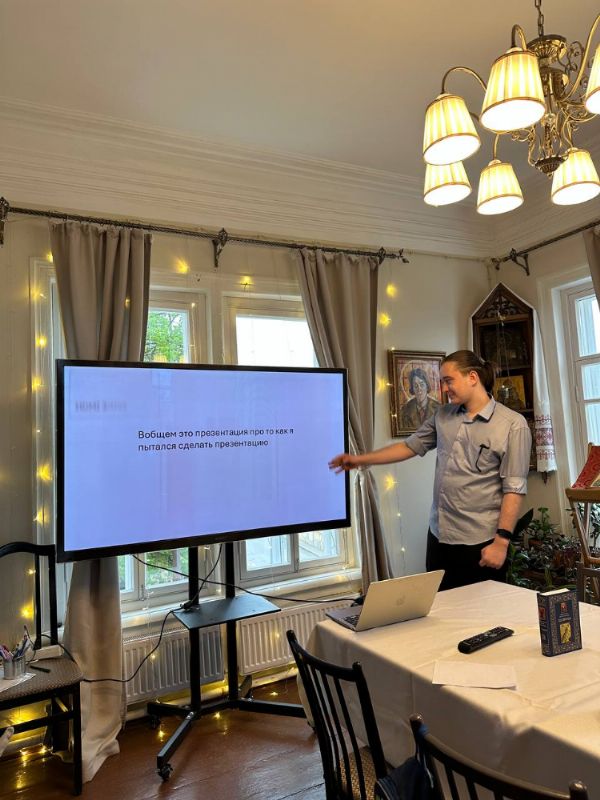 Встречи молодежки проходят в разных форматах. В этот раз она прошла в формате презентаций. Саша и Таня рассказывали о своем опыте воцерковления, катехизации и духовного роста. Не обошлось и без экзистенциализма от Якова: «Презентация как я делал презентацию»😂. Даша рассказала «Как не сойти с ума с двумя детьми в декрете», а Коля рассказал о своем хобби- коллекционировании мечей. Эксклюзивные кадры своего автостопа Краснодар-Томск показал Никита. Завершил выступления Иван иллюстрациями семинарской жизни.