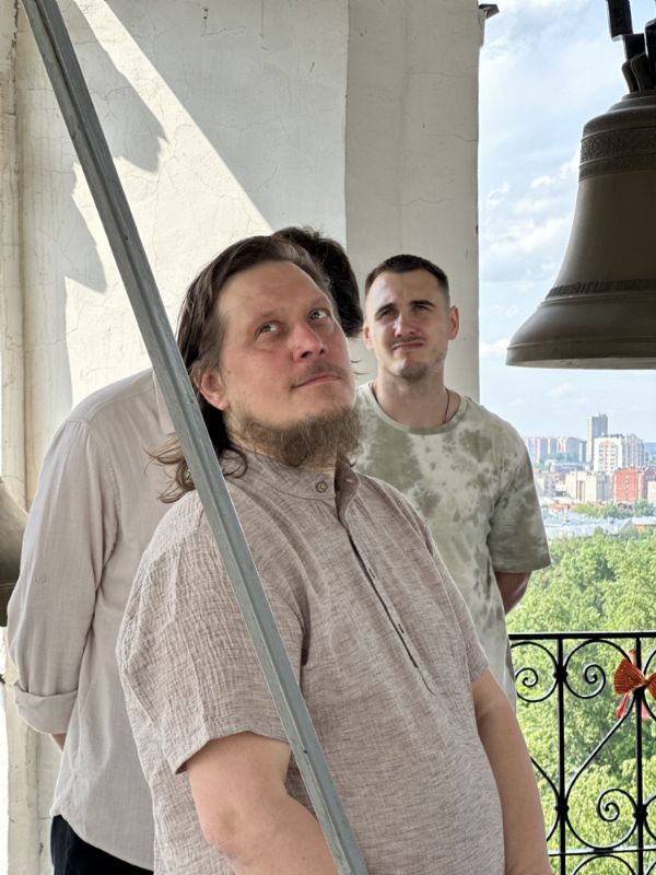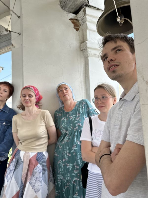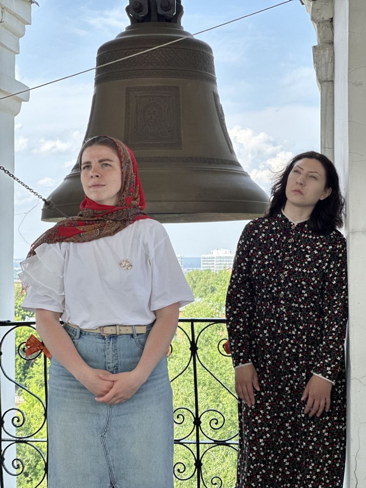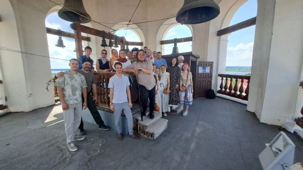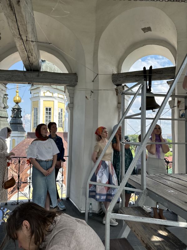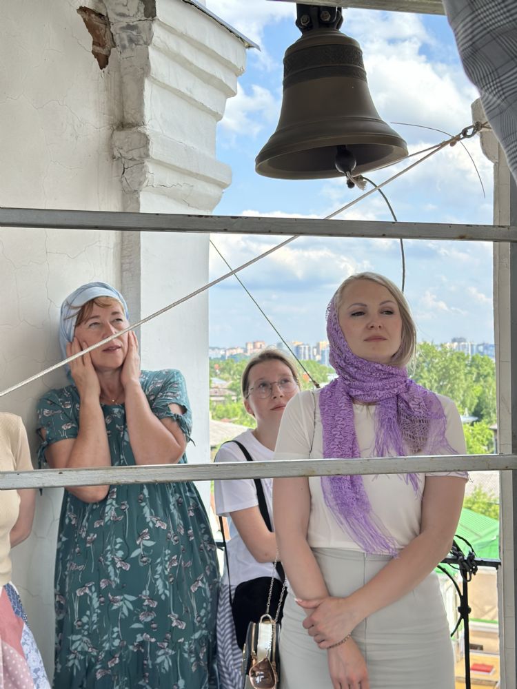 Гости встретились с томскими звонарями, с которыми их связывают давние дружеские отношения. Вместе они посетили Богоявленский кафедральный собор, где поднялись на колокольню, осмотрели звоницу и обсудили особенности местного колокольного звона.