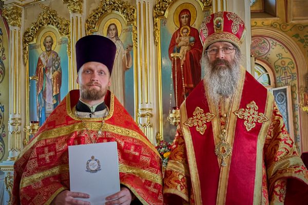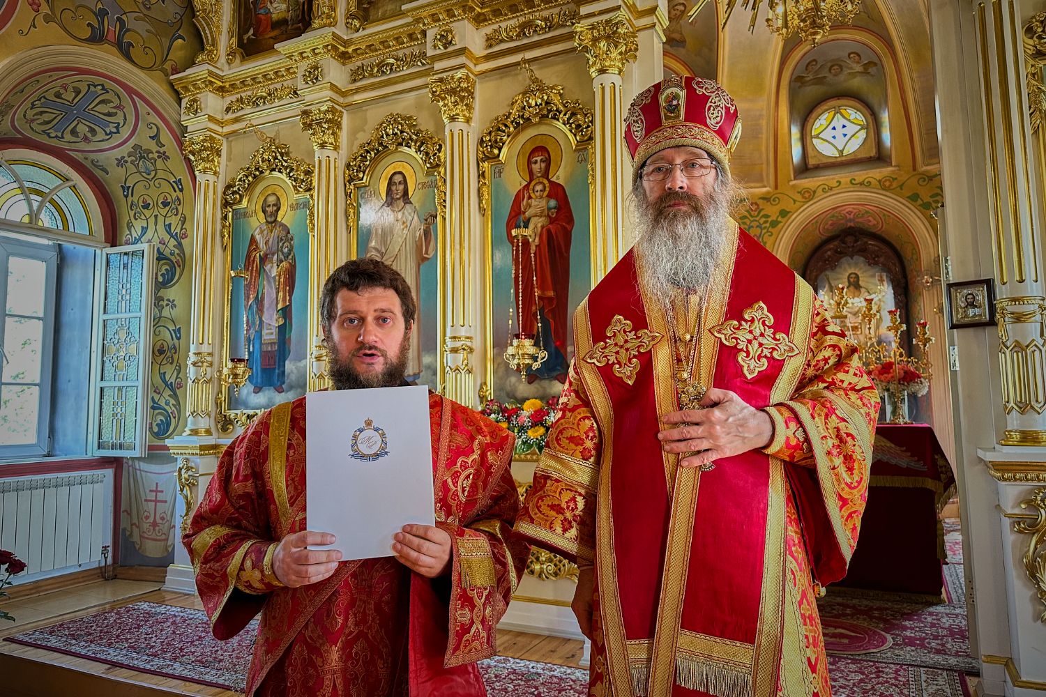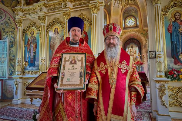 По окончании проповеди митрополит Ростислав обратился к сослужащим священникам с поздраительным адресом. В праздничные дни юбилеи священнической и диаконской хиротоии отмечают: Иерей Александр Федотов, штатный священник Богородице-Владимирского храма г. Северска, отмечает 25-летие священнической хиротонии. Иерей Александр был удостоен патриаршей грамоты за усердное служение и в ознаменование 25- летия служения престолу Божию. Иерей Сергей Шитиков, штатный священник Свято-Троицкой церкви г. Томска, отмечает 10-летие священнической хиротонии. Диакон Дмитрий Кремнев, штатный диакон Воскресенской церкви г. Томска, отмечает 10-летие диаконской хиротонии.