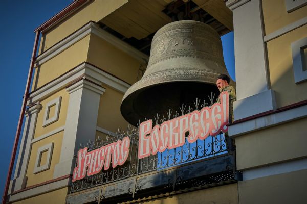 Богослужение в Воскресенском храме прошло по-настоящему торжественно. Красные пасхальные облачения духовенства, дорогие сердцу каждого православного верующего буквы «ХВ» над алтарем, звучавшие с какой-то особенной силой пасхальные возгласы и песнопения — все в этот вечер возвещало о большом празднике.