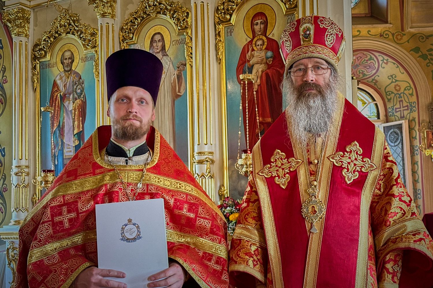 По окончании проповеди митрополит Ростислав обратился к сослужащим священникам с поздраительным адресом. В праздничные дни юбилеи священнической и диаконской хиротоии отмечают: Иерей Александр Федотов, штатный священник Богородице-Владимирского храма г. Северска, отмечает 25-летие священнической хиротонии. Иерей Александр был удостоен патриаршей грамоты за усердное служение и в ознаменование 25- летия служения престолу Божию. Иерей Сергей Шитиков, штатный священник Свято-Троицкой церкви г. Томска, отмечает 10-летие священнической хиротонии. Диакон Дмитрий Кремнев, штатный диакон Воскресенской церкви г. Томска, отмечает 10-летие диаконской хиротонии.