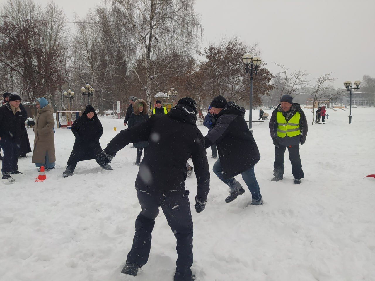 После забега гостей ждали увлекательные эстафеты, полные азарта и дружеского соперничества.⛷ Особой изюминкой стала пробежка на охотничьих лыжах — непривычное, но забавное испытание, вызывавшее бурю эмоций и восторженные аплодисменты.