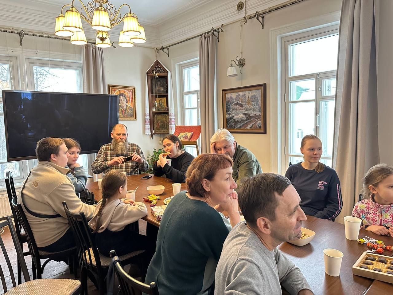 ⚽️ А традиционный футбол «по‑сороковски» вновь доказал: спорт — это не только состязание, но и повод для искреннего общения и радости. Завершился праздник в уютной обстановке Воскресенского Архондарика. За чашкой ароматного горячего чая участники делились впечатлениями, смеялись над забавными моментами дня и согревались не только напитком, но и теплом дружеских бесед.