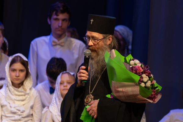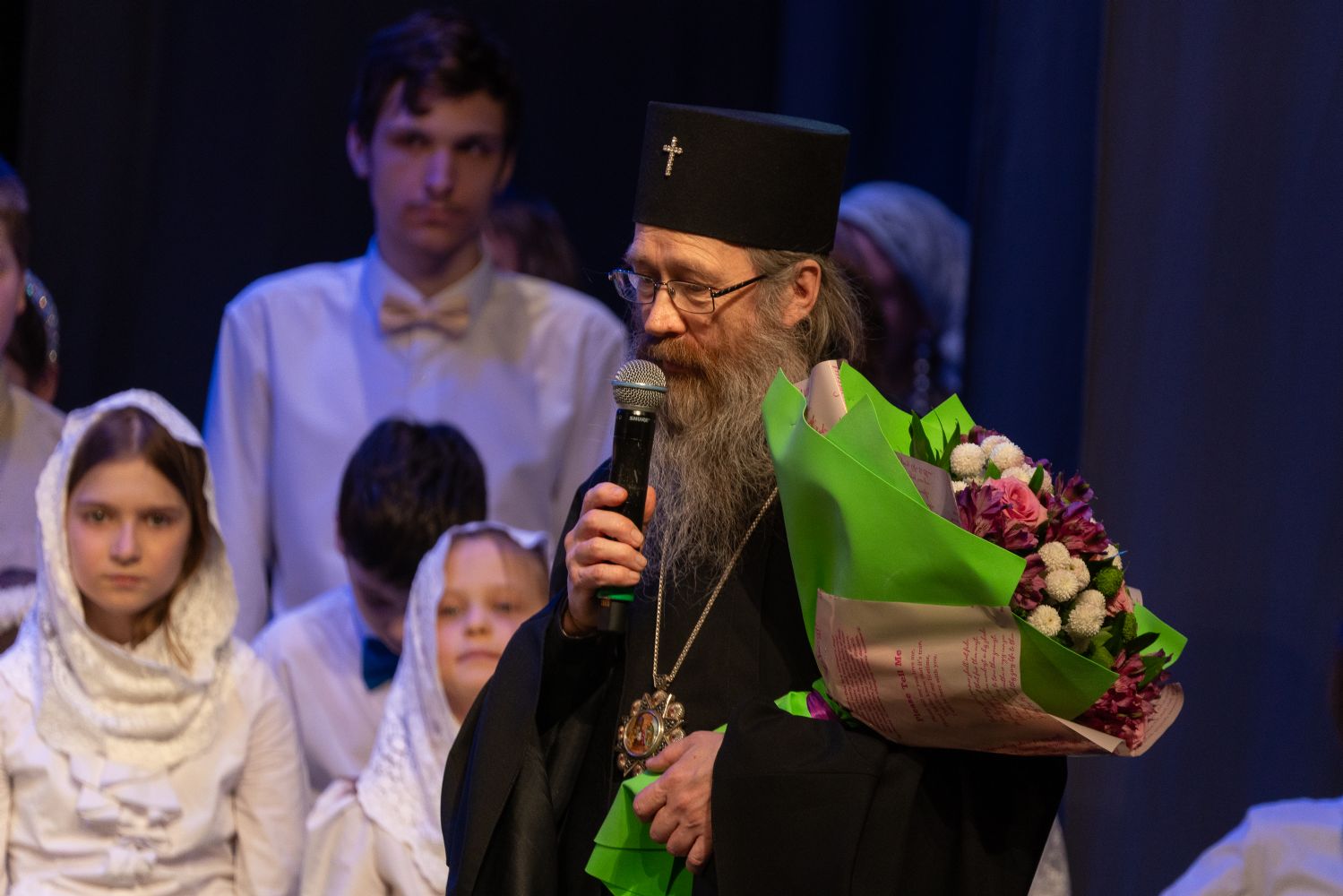 — Дорогие братья и сестры, — обратился Его Высокопреосвященство к пастве, когда все участники фестиваля вышли на сцену. — Рождество Христово — это тот праздник, когда мы друг друга поздравляем, друг с другом делимся радостью о Родившемся Спасителе, стараемся принести какие-то дары и друг другу. Но самое главное — стараемся принести дар Христу Спасителю, тот дар, который Он от нас ожидает. А таковым даром является доброе расположение нашего сердца, которое, я убежден, находит свое выражение и в творчестве, и в том замечательном концерте, который сегодня показали учащиеся воскресных школ и Губернаторского колледжа культуры.